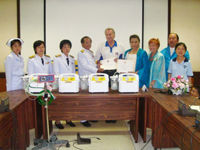 คุณนิตยา ปฏิมาสงเคราะห์ ประธานสมาคม ไว ดับยู ซี เอ กรุงเทพฯ – ศูนย์พัทยา นำคณะกรรมการสมาคมฯ – ศูนย์พัทยา ร่วมกับมอบเครื่องอุปกรณ์การแพทย์คือ เครื่องช่วยหายใจ รุ่น P220D ผลิตภัณฑ์ Smiths Medical ประเทศอังกฤษ S/N 0810399 ราคา 200,000.00 บาท (include vat) จำนวน 1 เครื่อง และเครื่องดูดเสมหะ รุ่น SUCTION FRESCO จำนวน 5 เครื่อง ราคา 30,000.00 บาท ณ วันที่ 12 สิงหาคม 2553 ณ ห้องทรายแก้ว ของโรงพยาบาลบางละมุง ต.นาเกลือ อ.บางละมุง จ.ชลบุรี เพื่อใช้สำหรับนำไปช่วยเหลือผู้ป่วยเรื้อรัง ของโรงพยาบาลบางละมุง โดยมีผู้ให้การสนับสนุนมาร่วมกันมอบดังนี้
