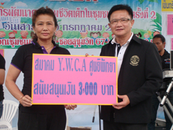 คุณนิตยา ปฏิมาสงเคราะห์ ประธานสมาคมไว ดับยู ซี เอ กรุงเทพฯ – ศูนย์พัทยา นำคณะกรรมการสมาคมฯ ไปร่วมกันมอบเงินให้กับโรงเรียนบ้านมาบฟักทอง เพื่อทำบ่อเลี้ยงปลาและปลูกเห็ดนางฟ้าในโครงการ “บ่อเลี้ยงปลาเพื่อน้อง” เป็นจำนวนเงินทั้งสิ้น 23,000 บาท และมอบเมล็ดพันธุ์ผักชนิดต่างๆ จำนวน 10 ชนิด ให้กับโรงเรียนฯ เพื่อปลูกเป็นอาหารกลางวันสำหรับเลี้ยงเด็กนักเรียนใน “โครงการสิ่งแวดล้อมเพื่อการเกษตร” ของโรงเรียนฯ เมื่อวันที่ 25 มิถุนายน 2554