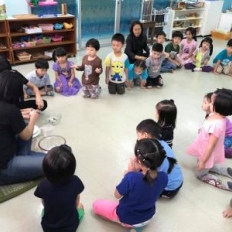การโยนลูกบอล การทรงตัวด้วยอุปกรณ์พลศึกษา เสริมทักษะด้านภาษา ดนตรี และการะทำขนมอย่างง่ายๆ ณ สถานศึกษาปฐมวัยสาทร                    สมาคม ไว ดับยู ซี เอ กรุงเทพฯ