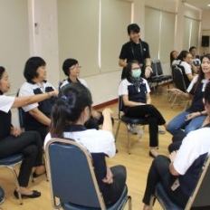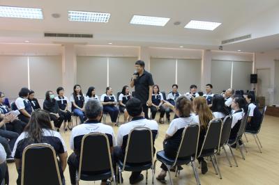 อาจารย์วิชัย ทศพรทรงชัย หัวหน้าฝ่ายอบรมและประสานงาน จากสำนักงานอาสากาชาด ในหัวข้อ "สื่อสารผ่านใจ สู่หัวใจบริการ"