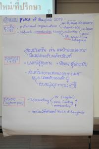 ข้อมูลการทำงานจาก YWCA Global Leadership โดย Ms.Mimi Han Vice President,World YWCA ได้ร่วมกันประชุมเชิงปฏิบัติการ หัวข้อ ”เป้าหมายของสมาคมฯ”โดยแบ่งเป็นเป้าหมายระยะสั้น-กลาง-ยาว และแนวทางปฏิบัติเพื่อบรรลุเป้าหมายของคณะกรรมการอำนวยการวาระปัจจุบัน
