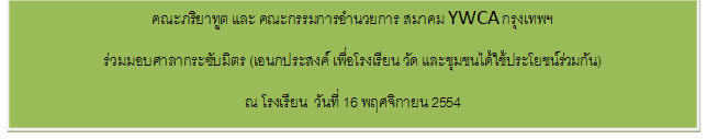ณ โรงเรียน วันที่ 16 พฤศจิกายน 2554