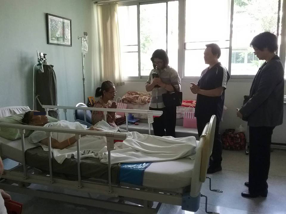 วันที่ 15 กุมภาพันธ์ 2560 นางวรรณี พลอยพิสุทธิ์ ประธานฝ่ายศาสนา และเจ้าหน้าที่สมาคมฯ เยี่ยมผู้ป่วยมะเร็ง ณ โรงพยาบาล มหาวชิราลงกรณ์ ธัญบุรี จังหวัดปทุมธานี