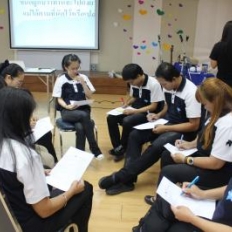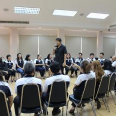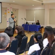 อาจารย์วิชัย ทศพรทรงชัย หัวหน้าฝ่ายอบรมและประสานงาน จากสำนักงานอาสากาชาด ในหัวข้อ "สื่อสารผ่านใจ สู่หัวใจบริการ"