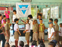 ไปร่วมกันจัดเลี้ยงอาหารใน “โครงการอาหารกลางวัน” ให้กับเด็กนักเรียนที่โรงเรียนบ้านมาบฟักทอง