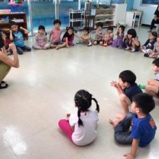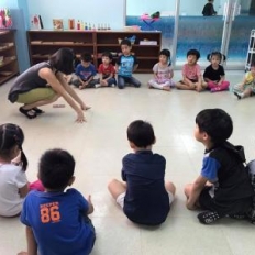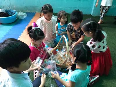 การโยนลูกบอล การทรงตัวด้วยอุปกรณ์พลศึกษา เสริมทักษะด้านภาษา ดนตรี และการะทำขนมอย่างง่ายๆ ณ สถานศึกษาปฐมวัยสาทร สมาคม ไว ดับยู ซี เอ กรุงเทพฯ