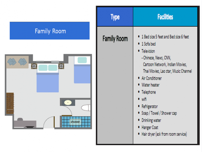 เครื่องปรับอากาศ, เครื่องทำน้ำอุ่น, ทีวี, โทรศัพท์, ห้องน้ำส่วนตัว